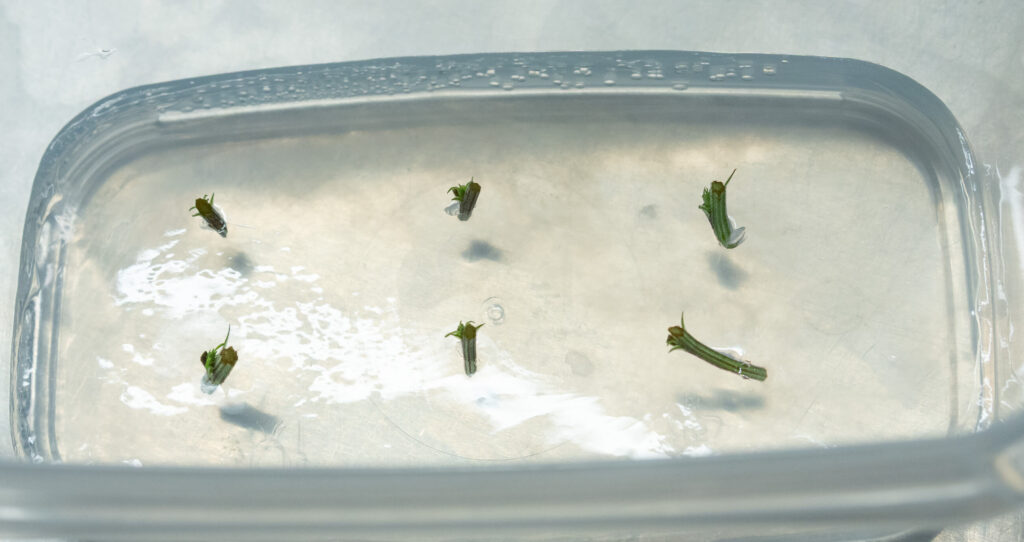 Die Gewebekulturen werden in eine nährstoffreiche Mischung gelegt, die wichtige Mineralien, Vitamine, Zucker und Pflanzenhormone wie Cytokinine zur Förderung der Sprossentwicklung und Auxine zur Anregung der Wurzelbildung enthält. Anschließend werden die Gewebekulturen versiegelt und mehrere Wochen lang stehen gelassen, bis sie schließlich beginnen, Wurzeln zu bilden.