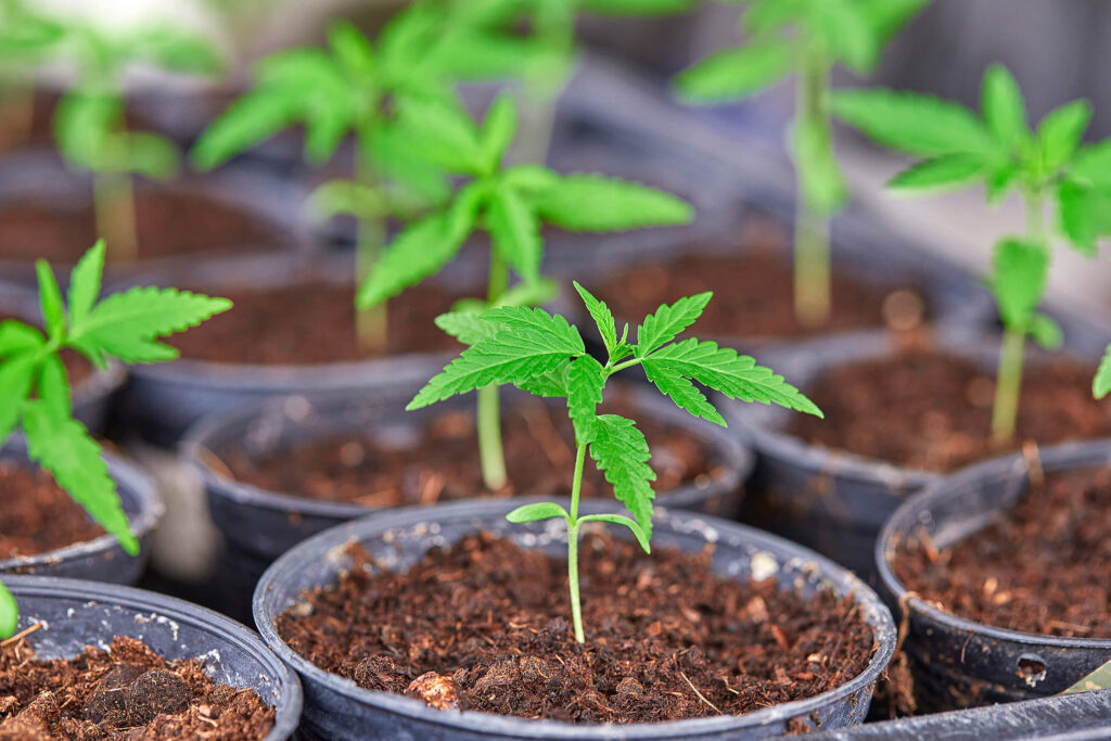 Die Explantate müssen in Töpfe mit einem Zuchtmedium (Erde, Kokosfasern) verpflanzt und in eine Umgebung mit hoher Luftfeuchtigkeit gebracht werden, um die sterilen Bedingungen zu replizieren, an die sie sich gewöhnt haben. Im Laufe der Zeit wird die Luftfeuchtigkeit allmählich reduziert, während die Lichtintensität und der Luftstrom erhöht werden, damit sich die Pflanzen an ihre neue Umgebung anpassen können. Erst wenn die Pflanzen akklimatisiert sind, können sie in den Grow-Room gebracht werden, wo die eigentliche Wachstumsphase beginnt.