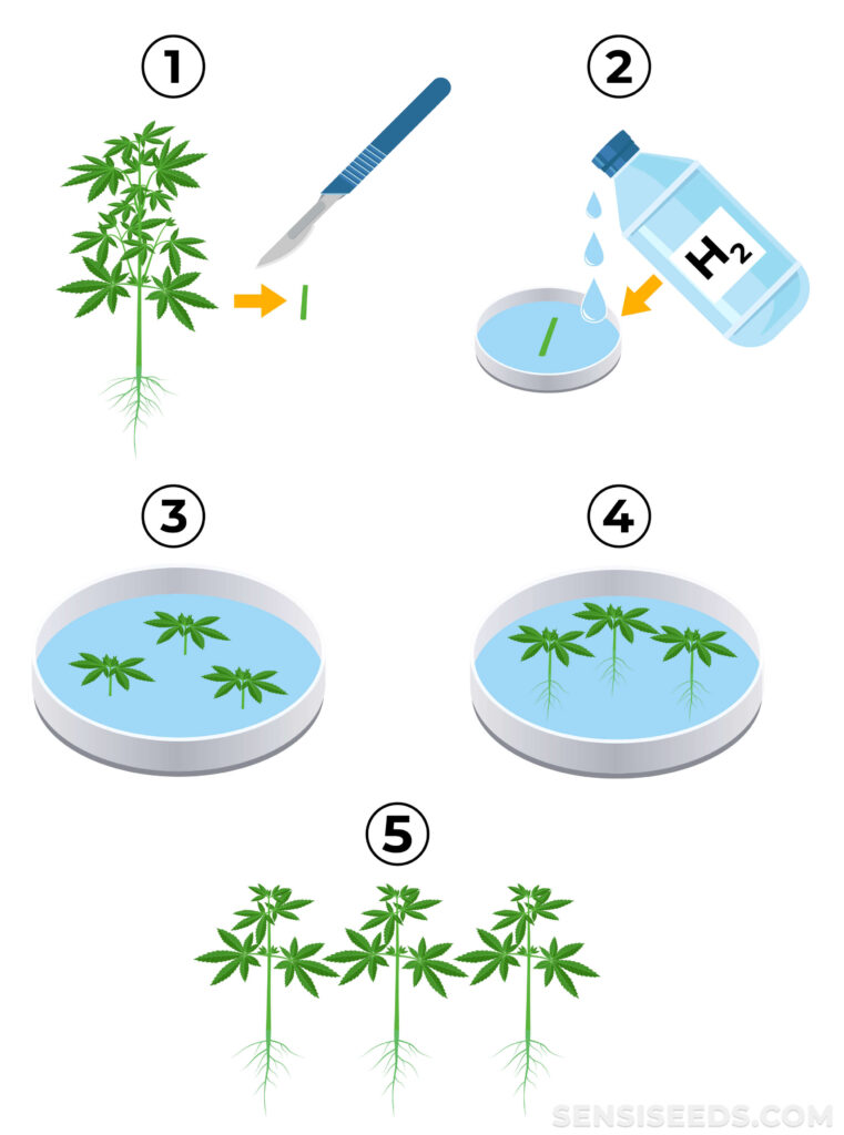 Bei diesen neuen Trieben handelt es sich um exakte Kopien der ursprünglichen Pflanze (ähnlich wie beim herkömmlichen Klonen). Das heißt auch, dass jeder Trieb entnommen und in frisches Medium umgesetzt werden kann, um sich weiter zu vermehren. In der Regel wird dieser Vorgang mehrmals wiederholt. Aus einer einzigen Probe können Grower Dutzende (oder sogar Hunderte) von Klonen erzeugen.