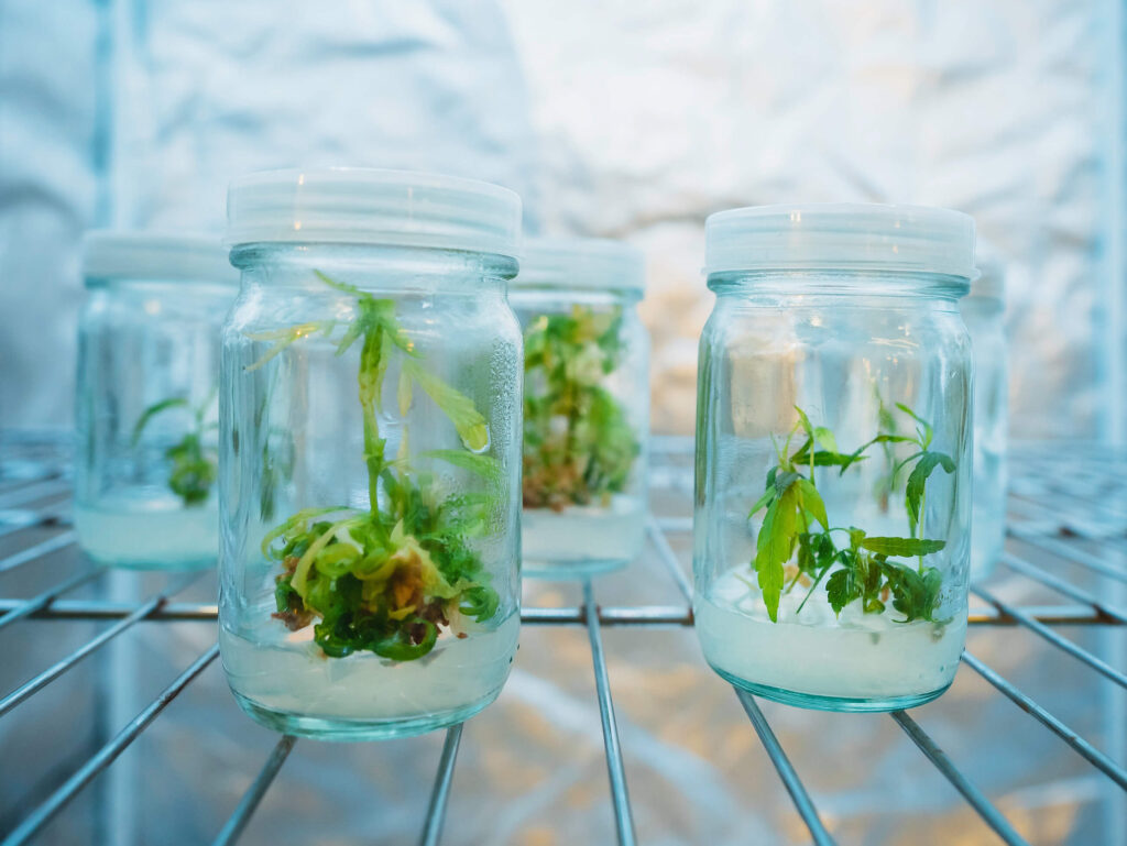 Die Cannabis-Gewebekultur – auch bekannt als Mikrovermehrung – erzielt die gleichen Ergebnisse wie das Klonen, allerdings auf eine schnellere und leichter skalierbare Weise. Die Grundidee besteht darin, dass Züchter extrem kleine Teile einer Cannabis-Pflanze (Triebspitzen, Knoten, eigentlich fast alles) ernten und daraus ganze neue Pflanzen züchten können, die genetisch mit der Mutterpflanze identisch sind.