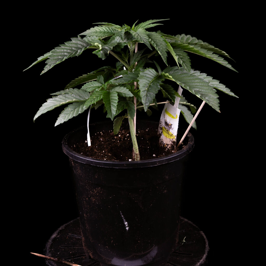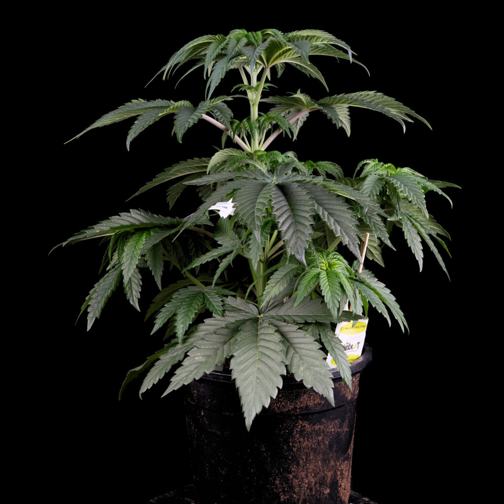 Dans sa troisième semaine, notre plante a poursuivi sa croissance régulière, atteignant une nouvelle hauteur de 23 cm. Nous avons également vu apparaître les branches latérales sur la tige principale, ainsi que plusieurs nouvelles séries de feuilles. À ce stade, l’espacement entre les nœuds était assez moyen, voire un peu serré, et la plante était assez élancée avec une biomasse clairsemée. À une semaine seulement de la floraison, nous avons une fois de plus doublé le volume d’eau à 400 ml par jour.