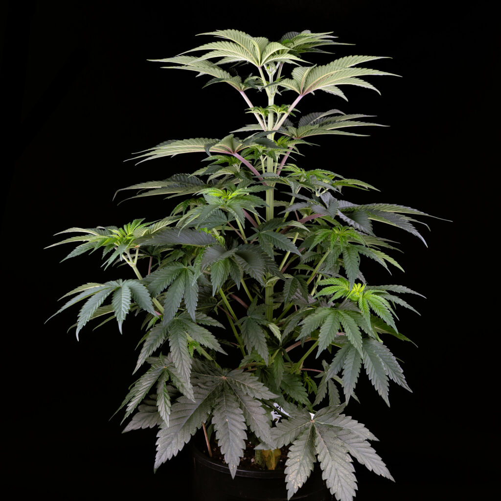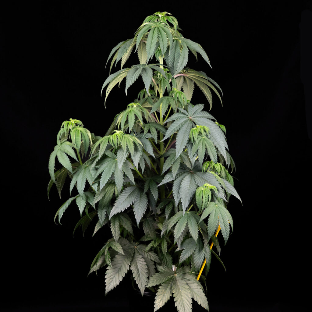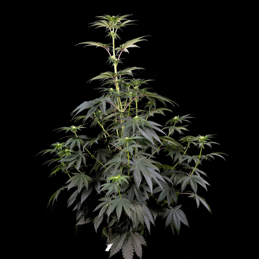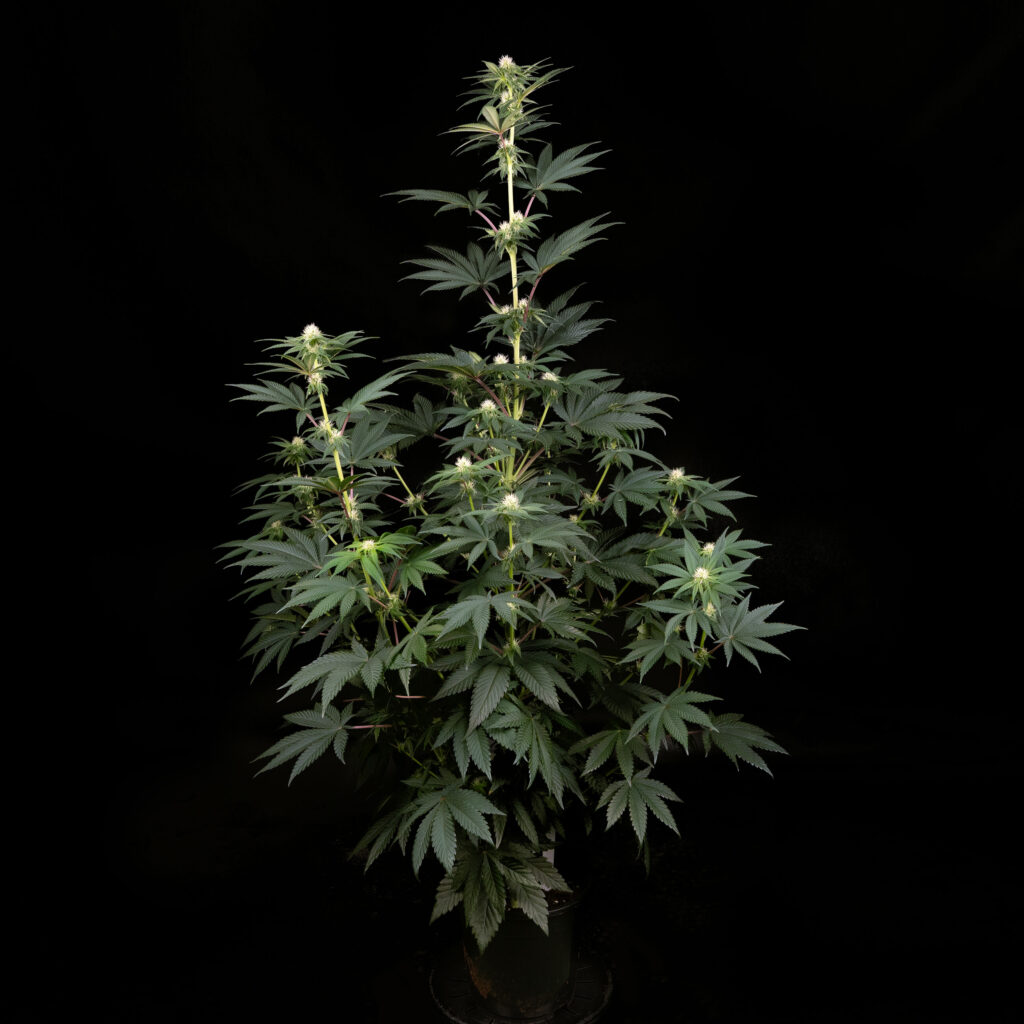 C’est dans sa huitième semaine que notre B-Funk Féminisée a connu la plus forte croissance hebdomadaire, gagnant 23 cm pour atteindre une hauteur impressionnante de 95 cm. À ce stade, l’espacement entre les nœuds pouvait être qualifié d’« extrême », la tige principale mesurant plus du double de la hauteur de la partie inférieure de la canopée. Les branches latérales étaient longues et fines, mais étonnamment robustes, et à la fin de la semaine, de petites grappes de pistils blancs apparaissaient à chaque site de floraison.