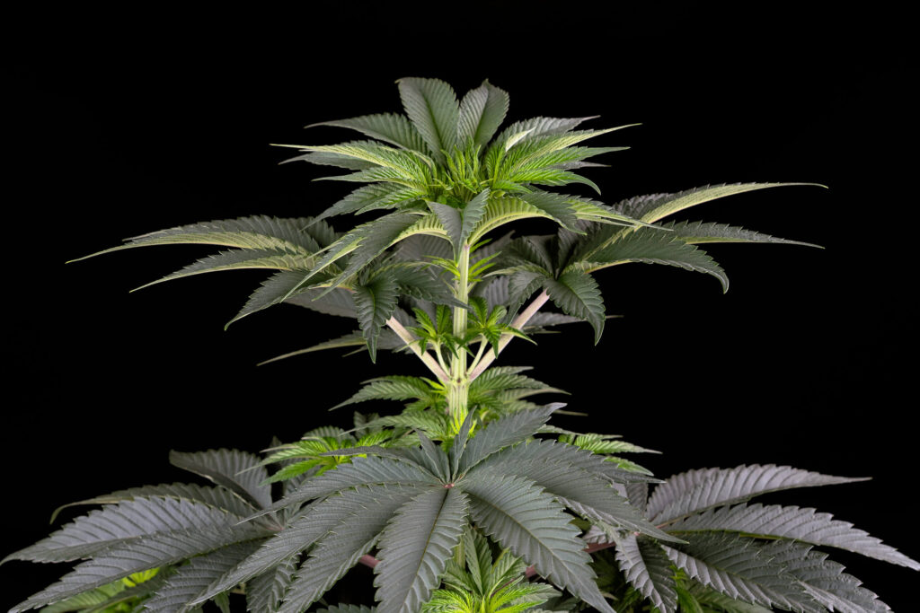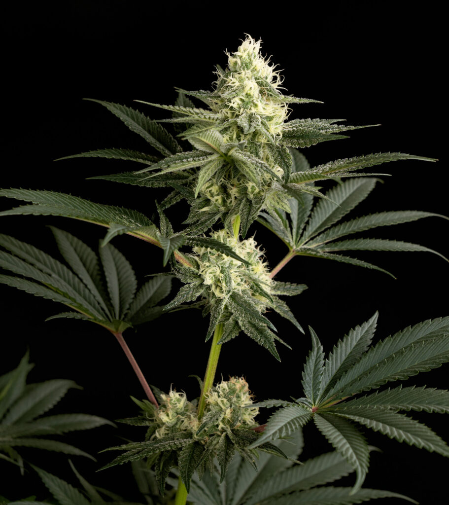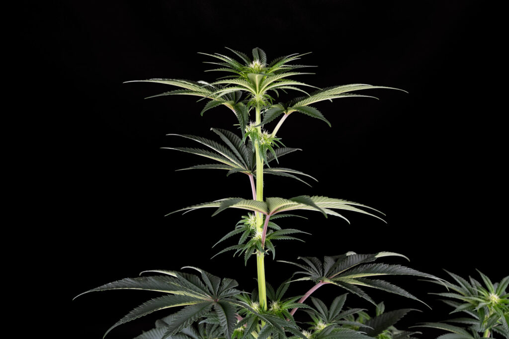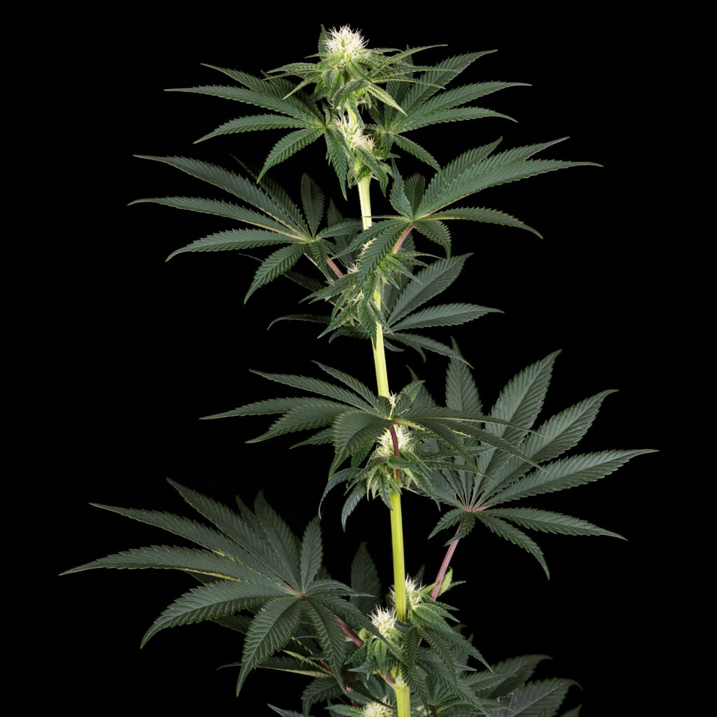 C’est dans sa huitième semaine que notre B-Funk Féminisée a connu la plus forte croissance hebdomadaire, gagnant 23 cm pour atteindre une hauteur impressionnante de 95 cm. À ce stade, l’espacement entre les nœuds pouvait être qualifié d’« extrême », la tige principale mesurant plus du double de la hauteur de la partie inférieure de la canopée. Les branches latérales étaient longues et fines, mais étonnamment robustes, et à la fin de la semaine, de petites grappes de pistils blancs apparaissaient à chaque site de floraison.