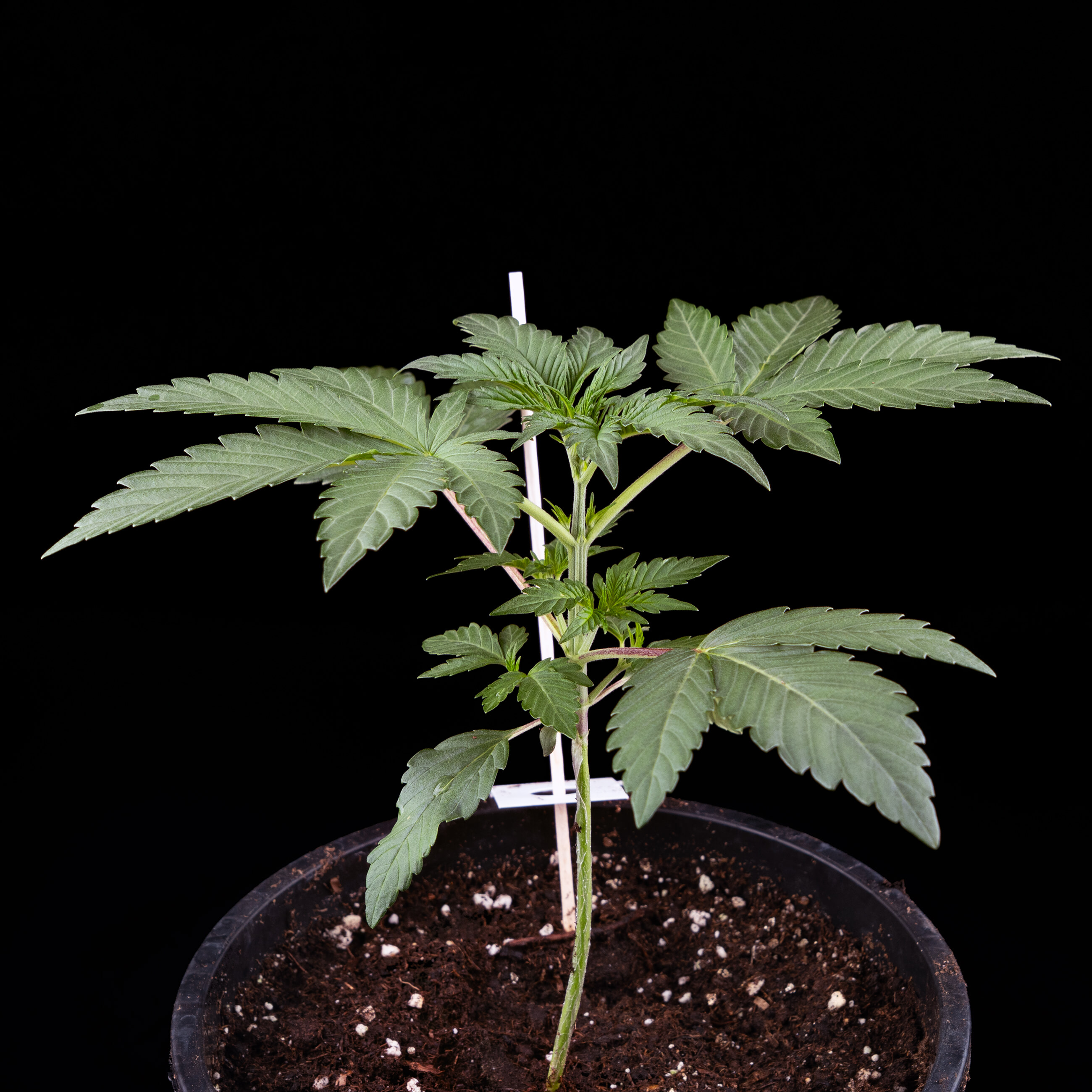 Dans sa troisième semaine, notre plante a poursuivi sa croissance régulière, atteignant une nouvelle hauteur de 23 cm. Nous avons également vu apparaître les branches latérales sur la tige principale, ainsi que plusieurs nouvelles séries de feuilles. À ce stade, l’espacement entre les nœuds était assez moyen, voire un peu serré, et la plante était assez élancée avec une biomasse clairsemée. À une semaine seulement de la floraison, nous avons une fois de plus doublé le volume d’eau à 400 ml par jour.