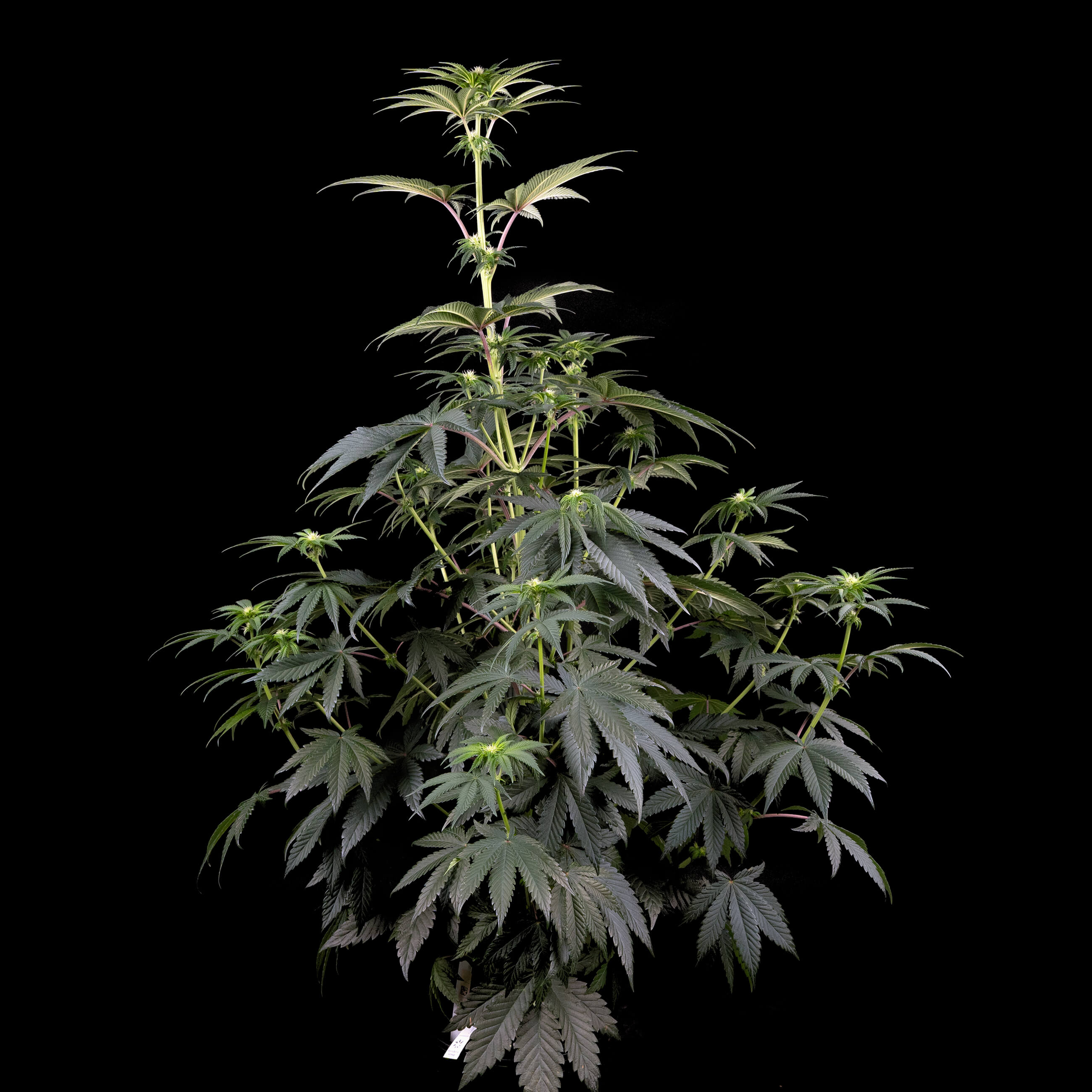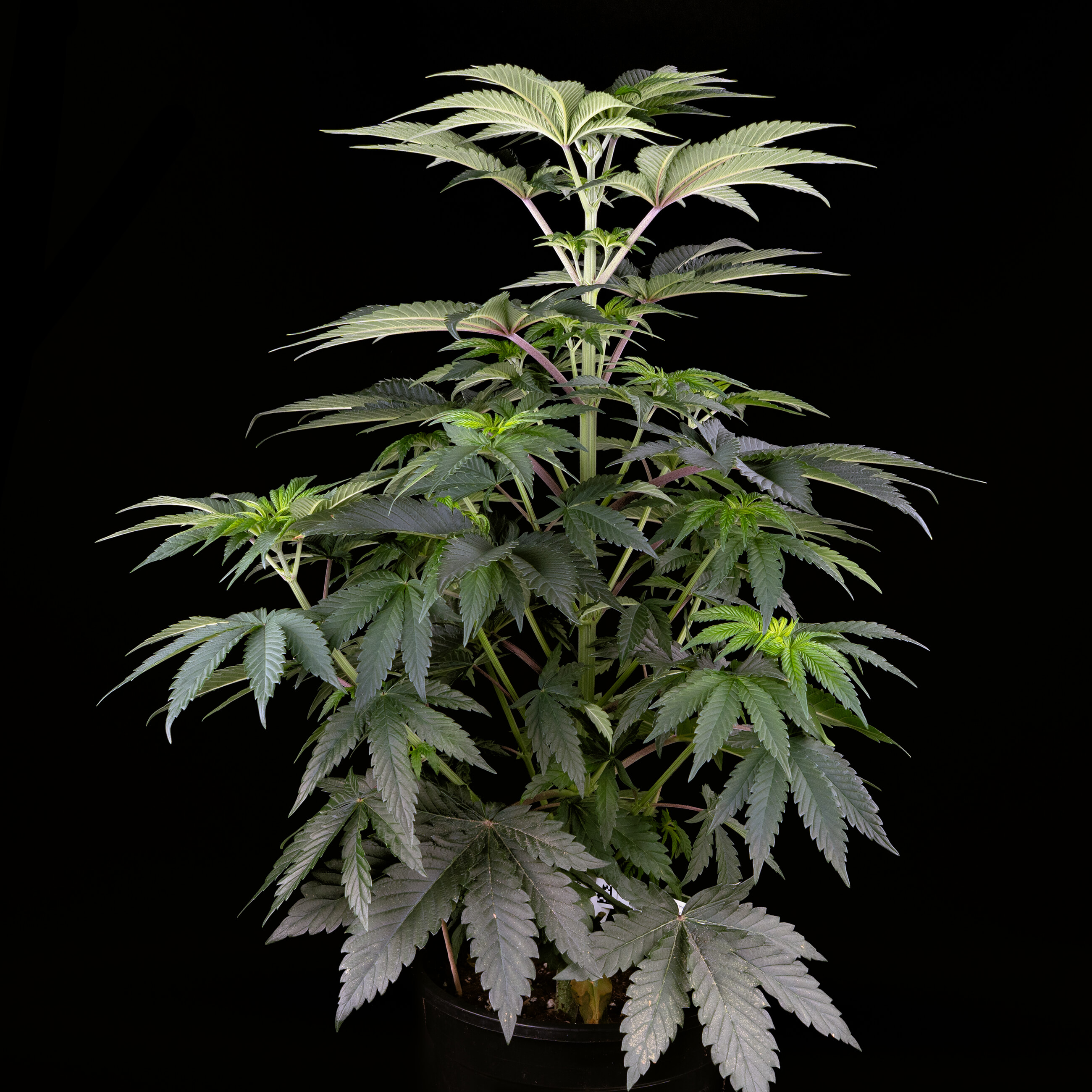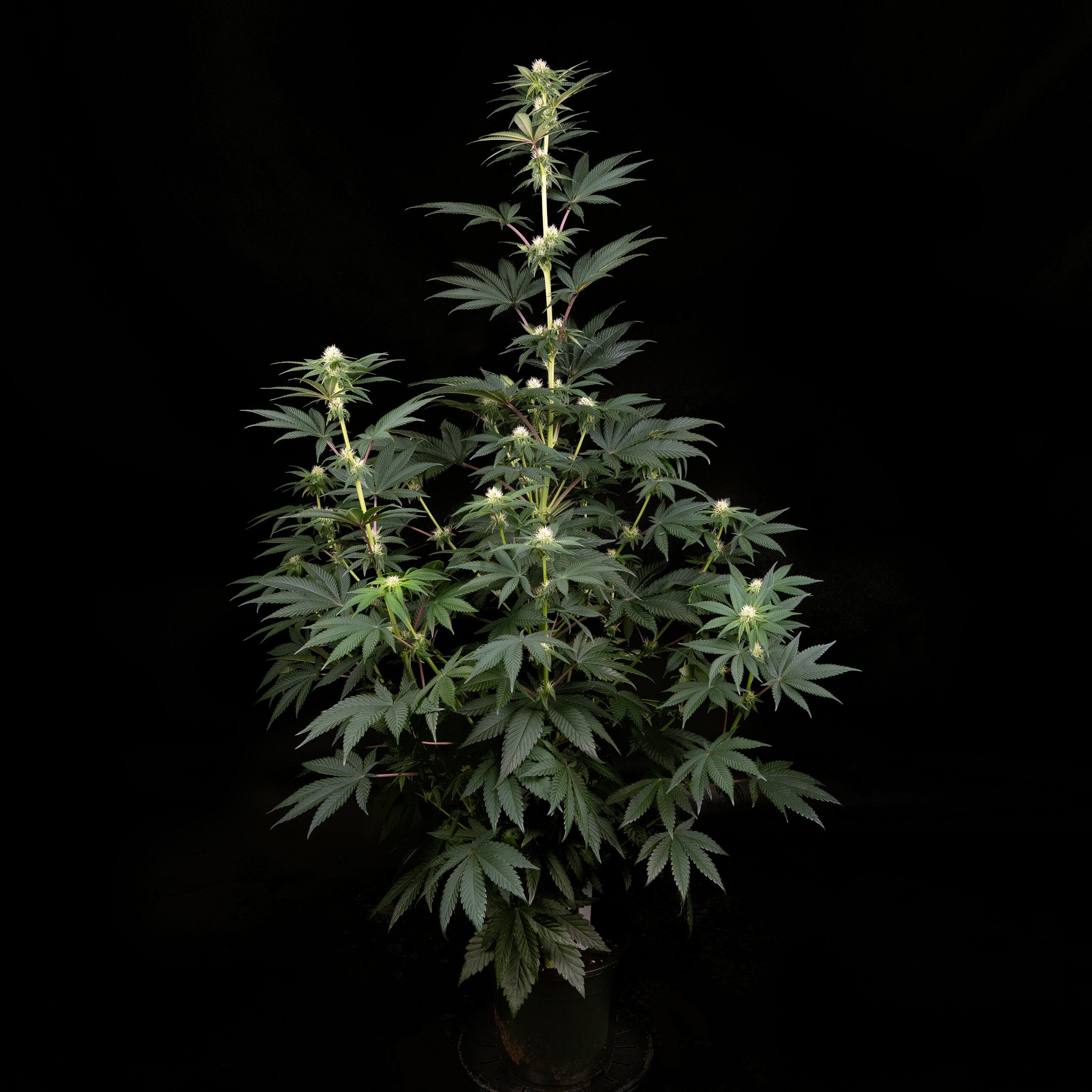 C’est dans sa huitième semaine que notre B-Funk Féminisée a connu la plus forte croissance hebdomadaire, gagnant 23 cm pour atteindre une hauteur impressionnante de 95 cm. À ce stade, l’espacement entre les nœuds pouvait être qualifié d’« extrême », la tige principale mesurant plus du double de la hauteur de la partie inférieure de la canopée. Les branches latérales étaient longues et fines, mais étonnamment robustes, et à la fin de la semaine, de petites grappes de pistils blancs apparaissaient à chaque site de floraison.