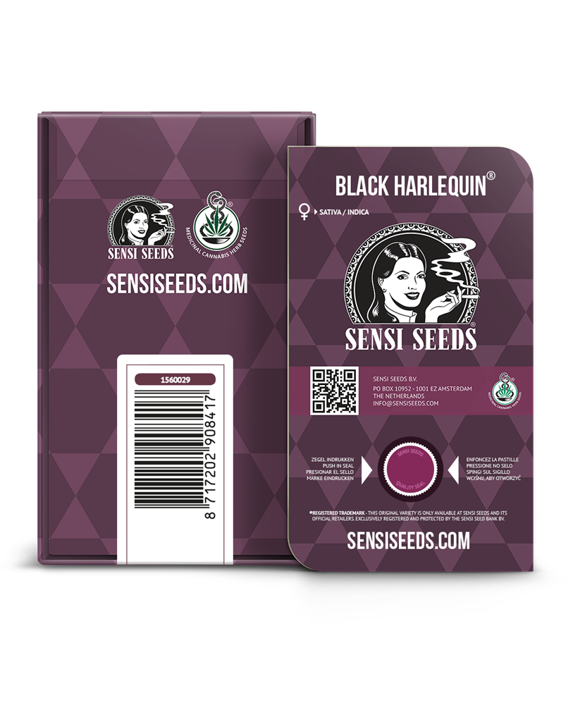 Black Harlequin Gefeminiseerde cannabiszaden zijn een kruising tussen indica en sativa. De genetische samenstelling bevat Black Domina van Sensi Seeds, een winnaar van de Cannabis Cup, en Harlequin, een zeer geprezen CBD-soort uit de VS.